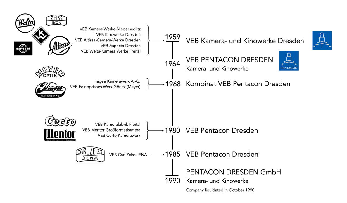 Post-WW2 there were still a lot of camera companies in Germany, and particularly in East Germany. In fact the heart of the German camera industry lay in Dresden, Jena and the surround area. Over the next decade, many of the companies were merged into a series of VEBs (Volkseigener Betrieb or Publicly Owned Enterprise) culminating with VEB Pentacon.