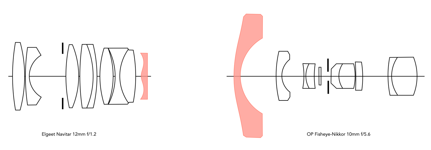 When super-speed movie films started to appear in the 1950s, the industry began to yearn for super-speed lenses to match the advanced film speeds. The worlds first aspherical lens appeared in 1955, developed by a small American company, the Elgeet Optical Company of Rochester NY. The lens was the Elgeet Golden Navitar 12mm f/1.2 wide angle lens for 16mm movie cameras. It was a 9-element lens which incorporated aspheric lens elements in addition to using rare-earth elements. Its claim to fame may have been the fact that it was 66% faster than an f/1.5 lens (which were quite common in the cine industry), covered 4.5 times the area of a normal one-inch lens and delivered sharp images over a 60° AOV. If only spherical lenses had been used in the design extra element would have been required.