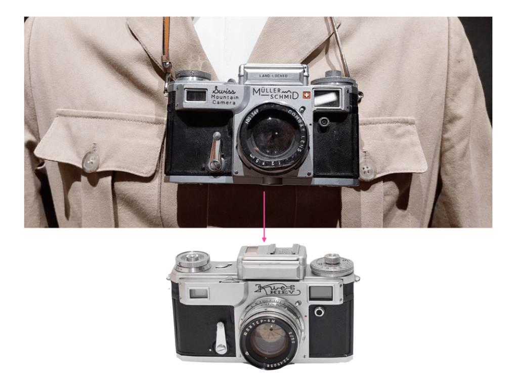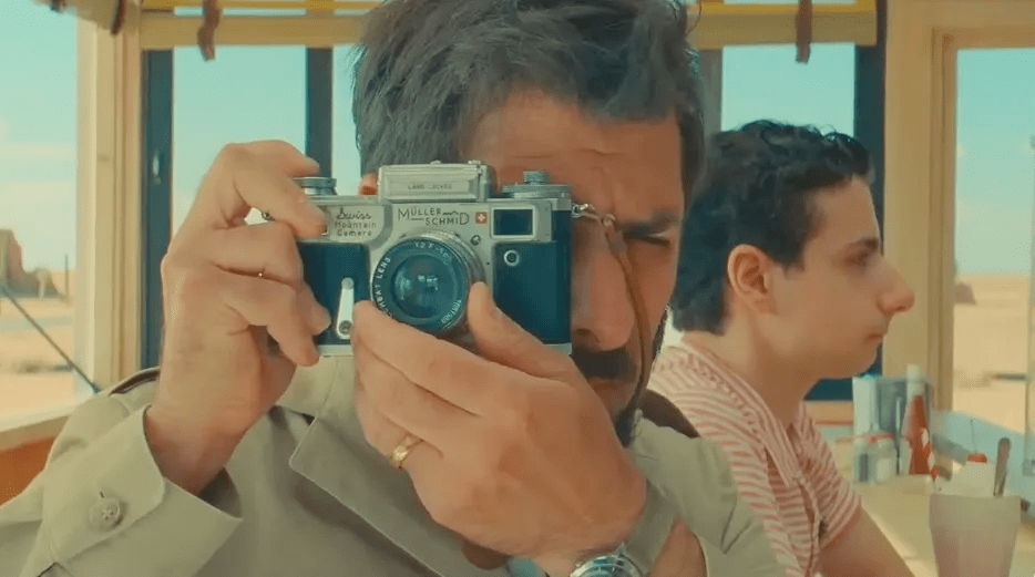 The camera is supposedly a Müller Schmid, “Swiss Mountain Camera”. But of course it isn’t. Does the “Swiss Mountain Camera” have some loose nod to the Swiss camera brand ALPA? Does Müller Schmid signify anyone? The closest association I could find is a Joey Schmid-Muller (1950-), a Swiss/Australian surrealist artist. Sure, Anderson could have pulled the name out of thin air, but I highly doubt it.