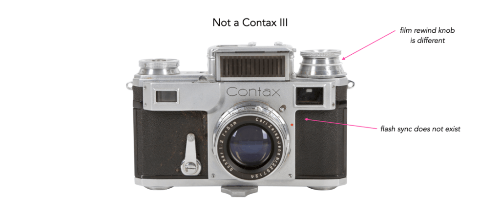 The camera of course may seem familiar to some. It seems like a rangefinder camera that came from Zeiss Ikon – perhaps a Contax? In the 1950s these cameras were produced in West Germany by Zeiss Ikon AG in the form of the Contax IIa and IIIa. Or it could have been a pre-1945 Contax II or III. The Contax III is an obvious contender, because it looks familiar, but there are two issues. Pre-war Contax III’s did not have a flash sync, and the film rewind knob was much taller. So it isn’t a Contax III. Instead we have to look further east, to Ukraine. After WW2, much of the Contax production line was taken as war reparations from the Zeiss-Ikon factories, to the Zavod Arsenal facility in Kiev. Production then started on Contax-döppelganger Kiev brand cameras in 1947 (the early models, Kiev 2, are believed to have been made from original Zeiss Ikon stock).