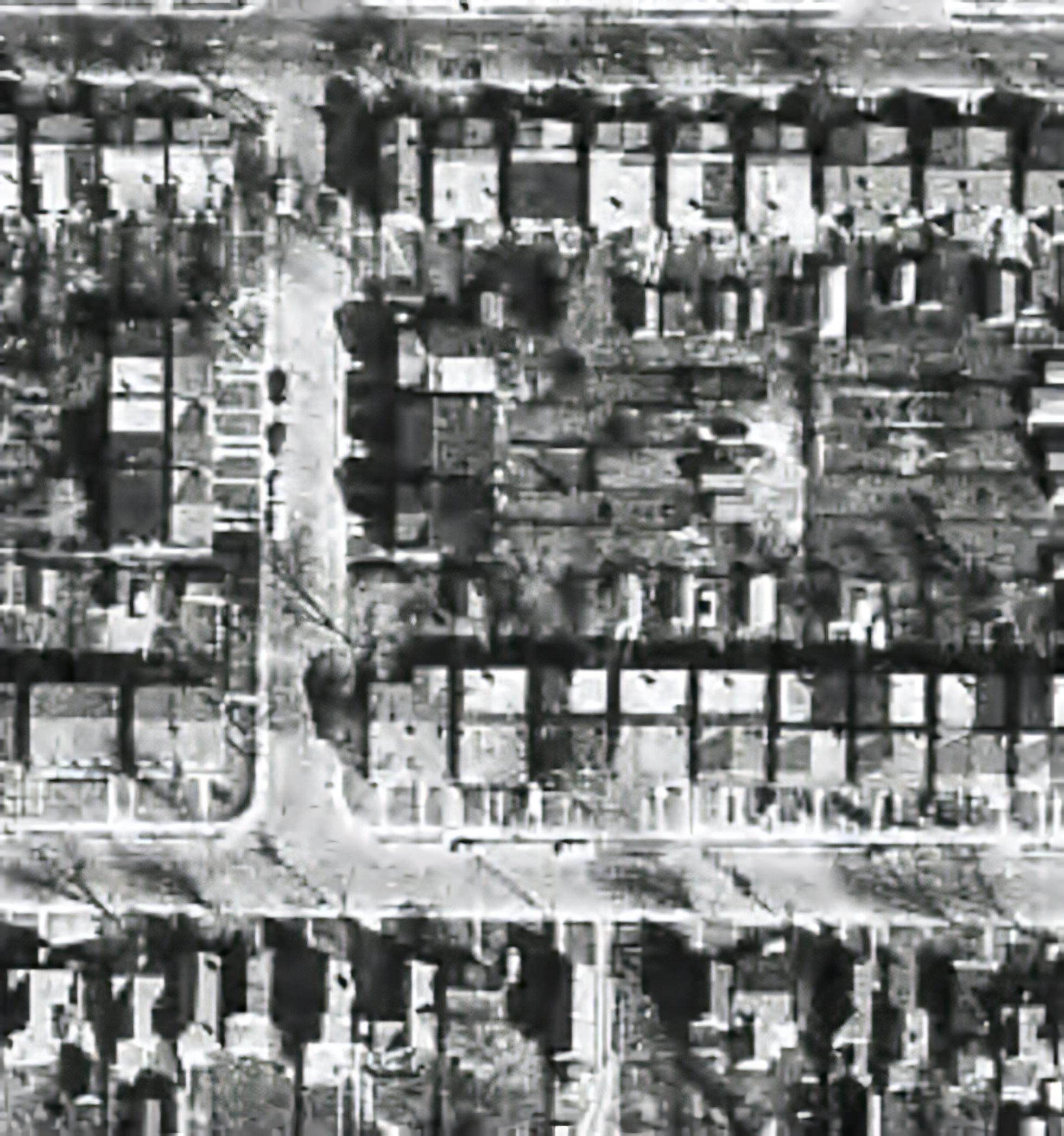 Now consider a second example. This picture in Figure 5 is of a corner grocery store in Montreal and has a histogram with a multipeak shape. The three distinct features almost fit into the three tonal regions: the shadows (dark blue regions, and empty dark space to the right of the building), the midtones (e.g. the road), and the highlights (the light upper brick portion of the building). There is nothing intrinsically wrong with this histogram, as it accurately represents the scene in the image.