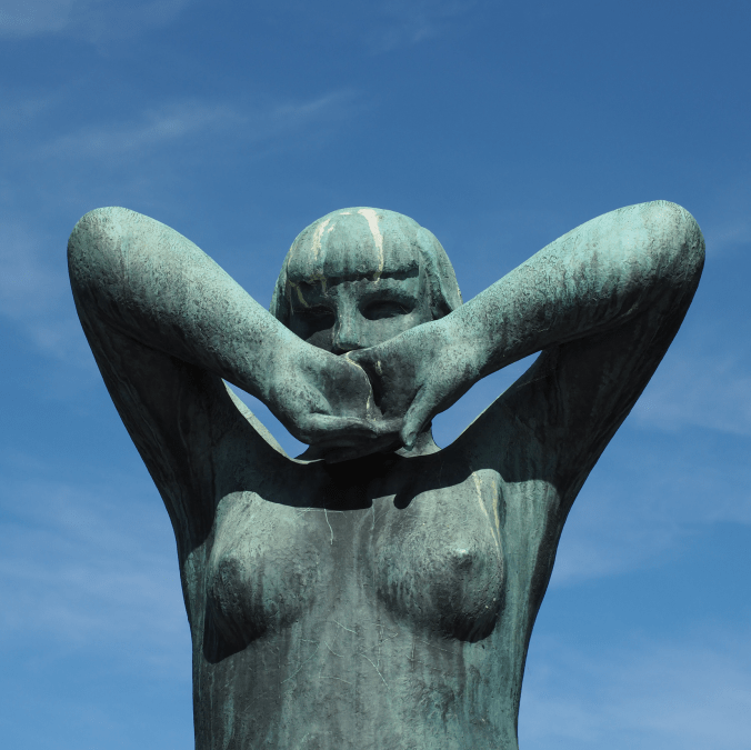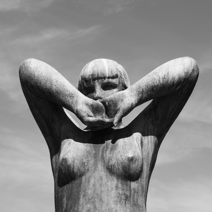 Above is a colour photograph of a bronze sculpture taken at The Vigeland Park in Oslo, a sculpture park displaying the works of Gustav Vigeland. The colour image is interesting, but the viewer is somewhat distracted by the blue sky, and even the patina on the statue. A more interesting take is the achromatic image, obtained via the Instagram Inkwell filter. The loss of colour has helped improve the contrast between the sculpture and its background.