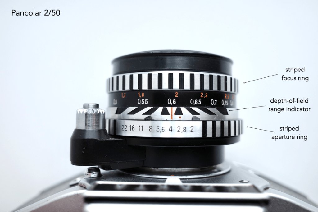 - The Perimetar 2.5cm f/6.3 for 35mm cameras, covering a 90° AOV with a deeply concave front element.
