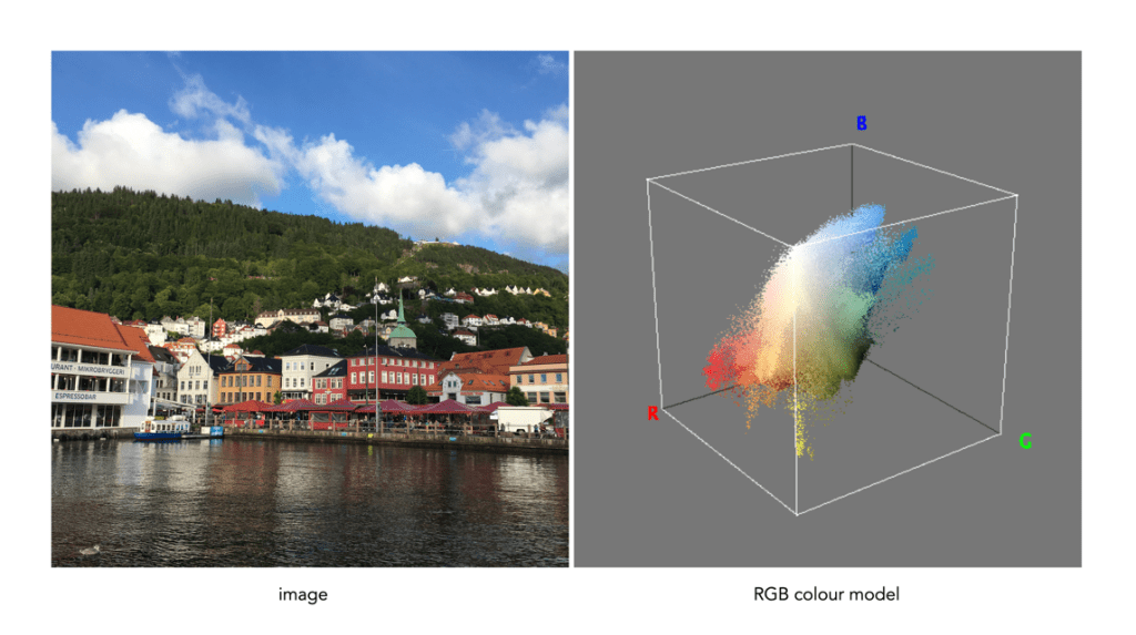 • It is not a perceptual model. In perceptual terms, colour and intensity are distinct from one another, but the R, G, and B components each contain both colour and intensity information. This makes it challenging to perform some image processing operations in RGB space.