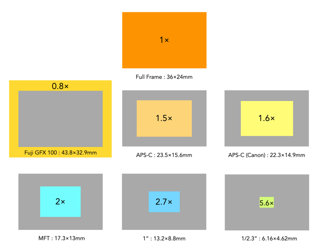 It would be easier not to have to talk about a sensor in terms of another sensor. But even though terms like “crop-sensor” and “crop-factor” are nonsensical, in all likelihood the industry won’t change the way they perceive non-35mm sensors anytime soon. I have previously described how we could alleviate the term crop-factor as it relates to lenses, identifying lenses based on their AOV rather than purely by their focal length. This works because nearly all lenses are designed for a particular sensor, i.e. you’re not going to buy a MFT lens for an APS-C camera.