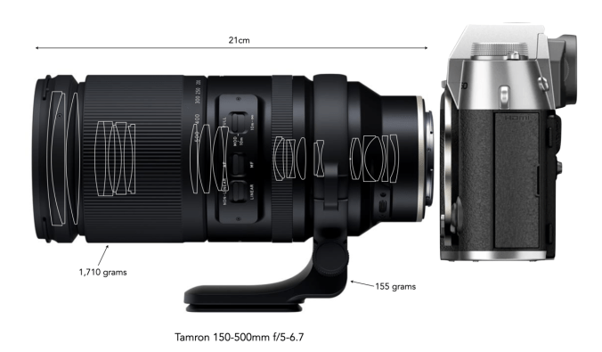 ③ Super telephoto zooms − The zooms offer focal lengths like 100-500mm, and are very versatile, just not for the beginner. It’s tempting to consider, but not actually that useful unless you have a specific need, i.e. sports and wildlife photography. In many cases it is just too much zoom. For example landscape photography doesn’t always gel well with focal lengths beyond say 200mm, because there is a tendency to loose perspective, which is the whole point of many landscapes. The other problems are pretty obvious – size and weight. Of course here there is another benefit of mirrorless APS-C cameras, smaller zooms. The Tamron 150-500mm lens for Fuji-X seems amazing (225-750mm eq.), but it contains 25 elements, and weighs 1.71kg – try lugging that around for an extended period!