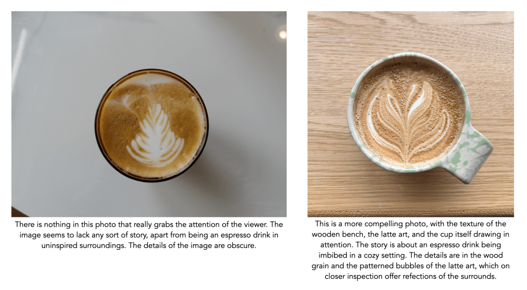 The first step involves grabbing a viewers attention. Therefore there should be something in the image that is outstanding or unusual. In the second phase, the viewer should be made to understand the story of the image. This is all about the flow of the image, with the viewer being lead through the composition. The third step involves maintaining the viewers gaze by getting them interested in the details of the image. Examples are shown in the figure above.