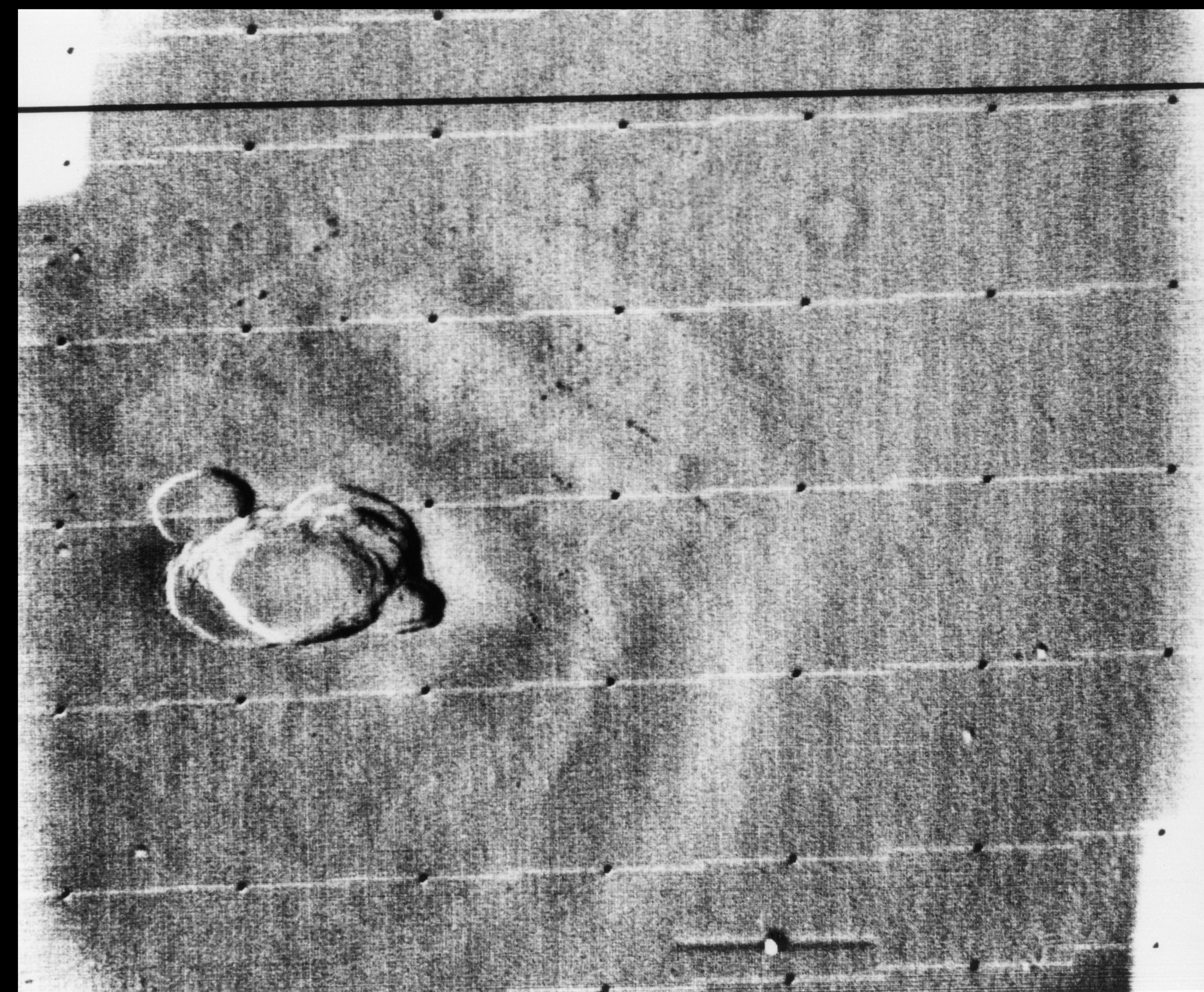 The first image obtained from the Soviet Luna III probe on October 7, 1959 (29 photos were taken of the dark side of the moon).