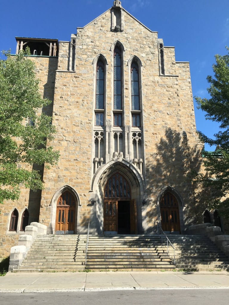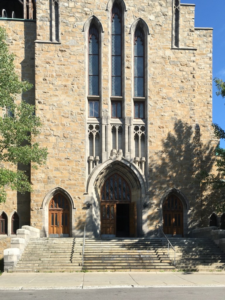 The goal was to have some way of quickly fixing issues with perspective, and distortions, in photographs. The most common form of this is the keystone effect (see previous post) which occurs when the image plane is not parallel to the lines that are required to be parallel in the photograph. This usually occurs when taking photographs of buildings where we tilt the camera backwards, in order to include the whole scene. The building appears to be “falling away” from the camera. Fig.1 shows a photograph of a church in Montreal. Notice, the skew as the building seems to tilt backwards.
