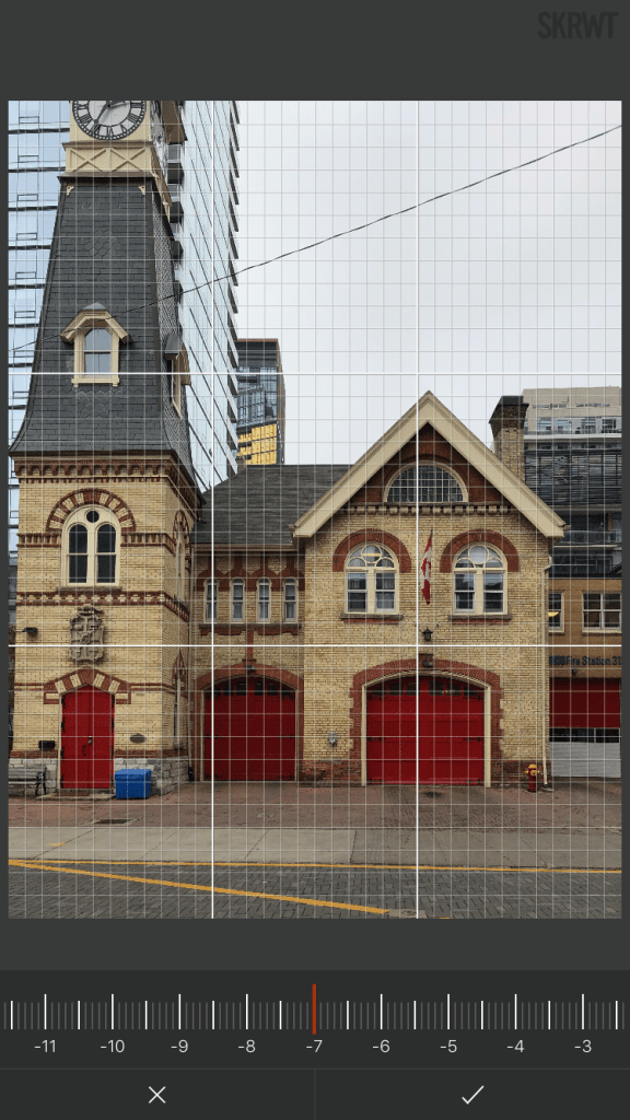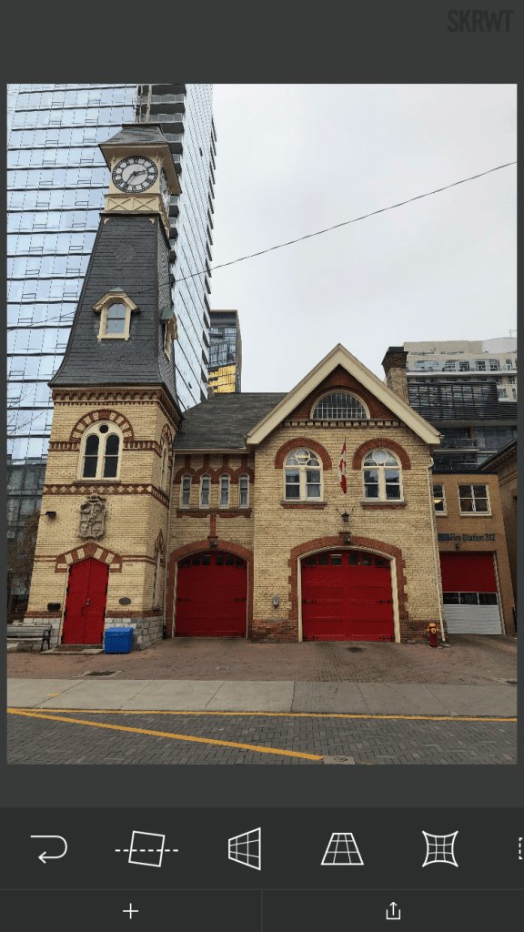 Here is a third example, of Toronto’s flatiron building, with the building surrounded by enough “picture” to allow for corrective changes that don’t cut off any of the main object.