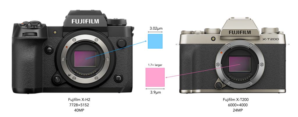 For years we have seen the gradual creep of increased photosites on sensors (images have pixels, sensors have photosites – pixels don’t really have a dimension, whereas photosites do). The question is, how many photosites is too many photosites (within the physical constraints of a sensor)? It doesn’t matter the type of sensor, they have all become more congested – Micro-Four-Thirds has crept up to 25MP (Panasonic DC-GH6), APS-C to 40MP (Fuji X-T5), and full-frame to 60MP (Sony A7R-V).