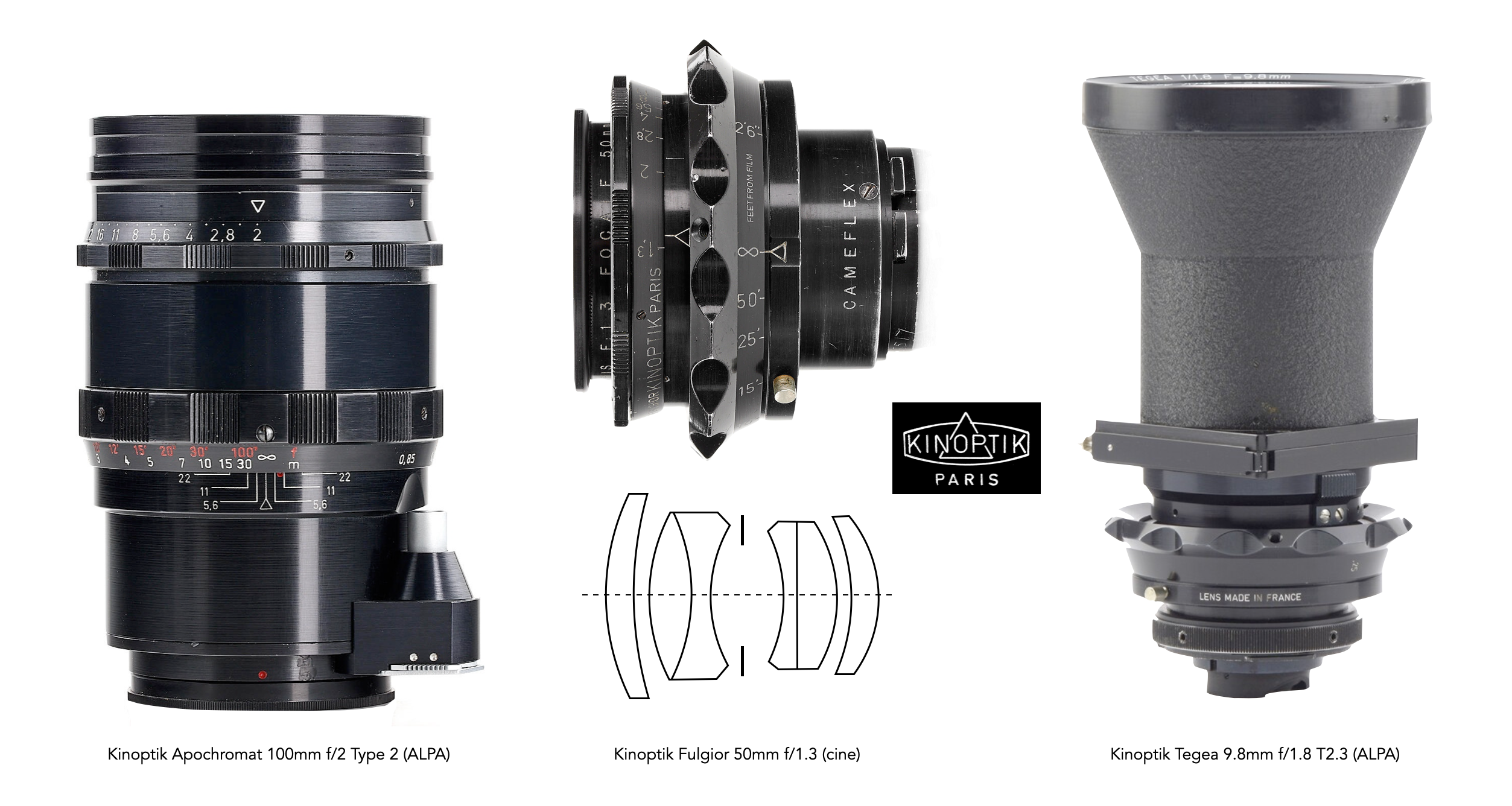 Kinoptik was founded in Paris in 1932 by Georges Grosset and Georges Perthuis. Grosset began by creating 35mm camera optics with a series of Apochromat lenses in 1939 (lenses with better correction of chromatic and spherical aberrations), all with the same double-gauss optical structure.
