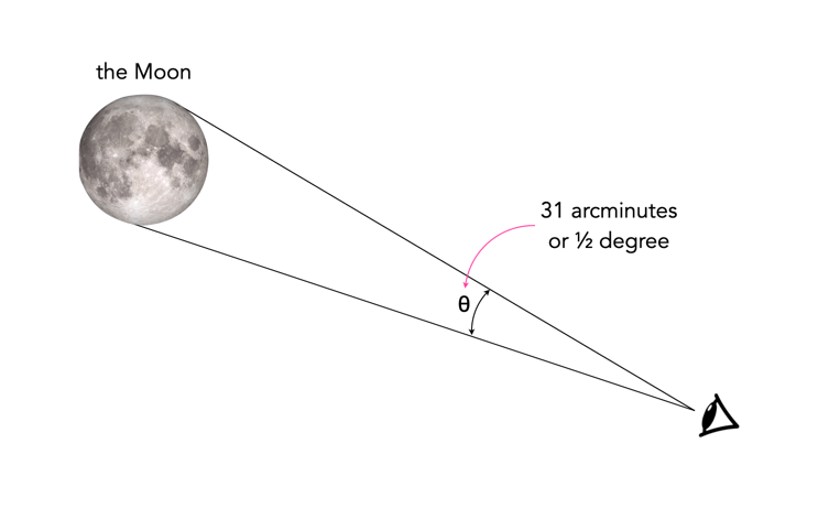 The number of megapixels required to print something, or view a television is ultimately determined by the human eye’s visual acuity, and the distance the object is viewed from. For someone with average vision (i.e. 20/20), their acuity would be defined as one arcminute, or 1/60th of a degree. For comparison, a full moon in the sky appears about 31 arcminutes (1/2 a degree) across (Figure 1).