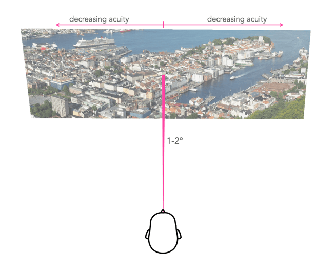 Fig.3: At 1-2° the foveola provides the greatest amount of acuity.